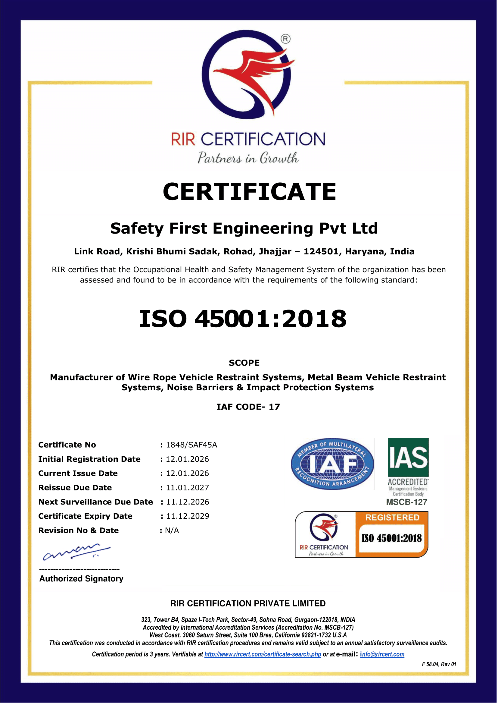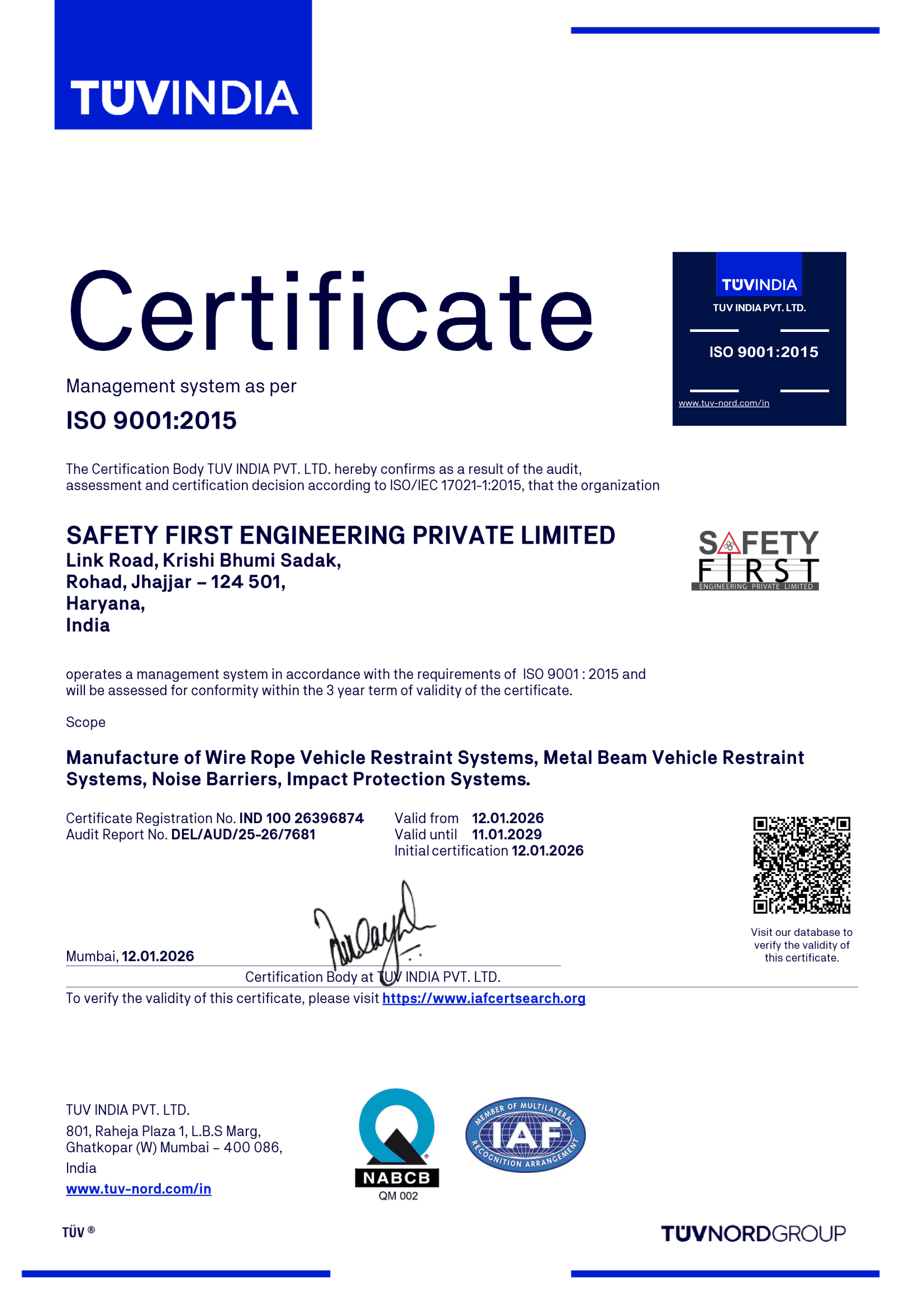 Safety First Engineering Private Limited (SFEPL) is a leading manufacturer of crash-tested road safety barrier systems and engineered infrastructure solutions in India. With integrated manufacturing capabilities, advanced installation infrastructure, and global technical collaborations, we deliver high-performance products built to international standards. Our focus on engineering precision, quality control, and execution excellence enables us to support highways, urban, solar and other infrastructure projects across the country.